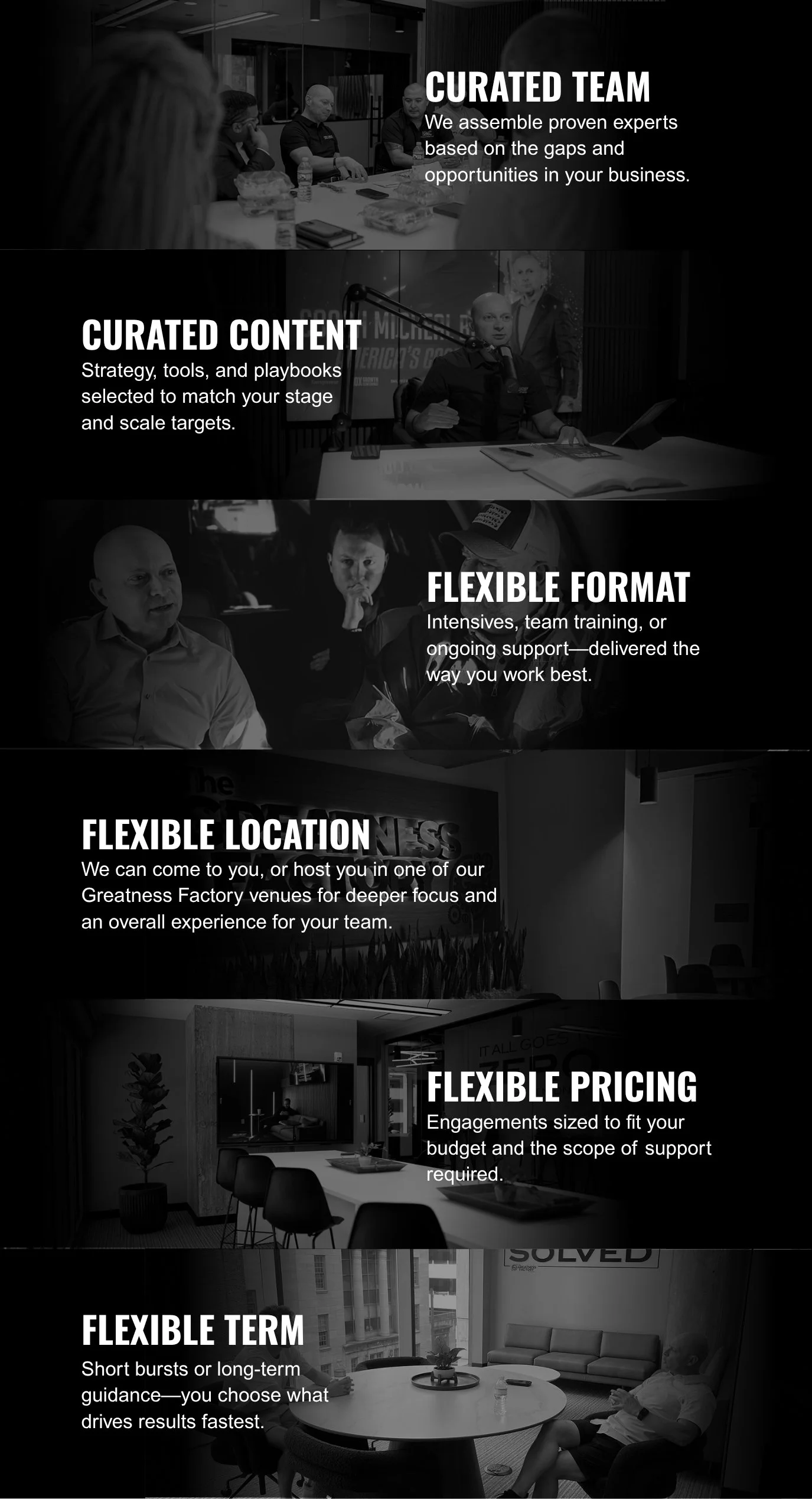 Our consulting is designed for leaders who already have traction and are ready to scale. It’s not a fit for early-stage businesses, hobbyists, or those looking for generic advice or motivation.